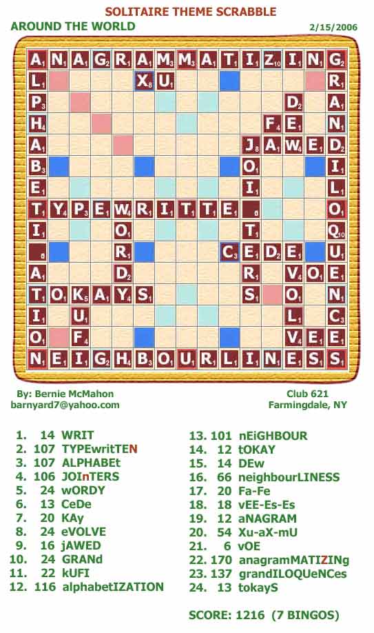 Solitaire Theme Scrabble - Self constructed theme boards created in 2006 by Bernie McMahon